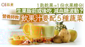 營養師說明,果汁或果乾是高升糖指數食物,而水果的營養素與蔬菜不同,不能用來取代蔬菜。