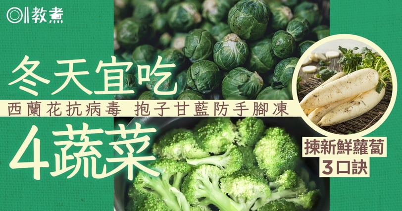醫師表示,當季蔬菜除了好吃以外,還有豐富的營養素可應對冬天疾病,包括白蘿蔔、菠菜、西蘭花、抱子甘藍等,都是冬天的好食材。